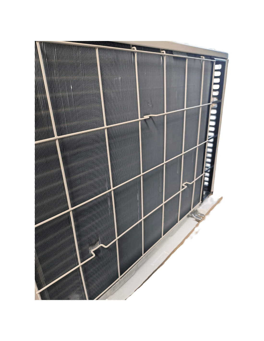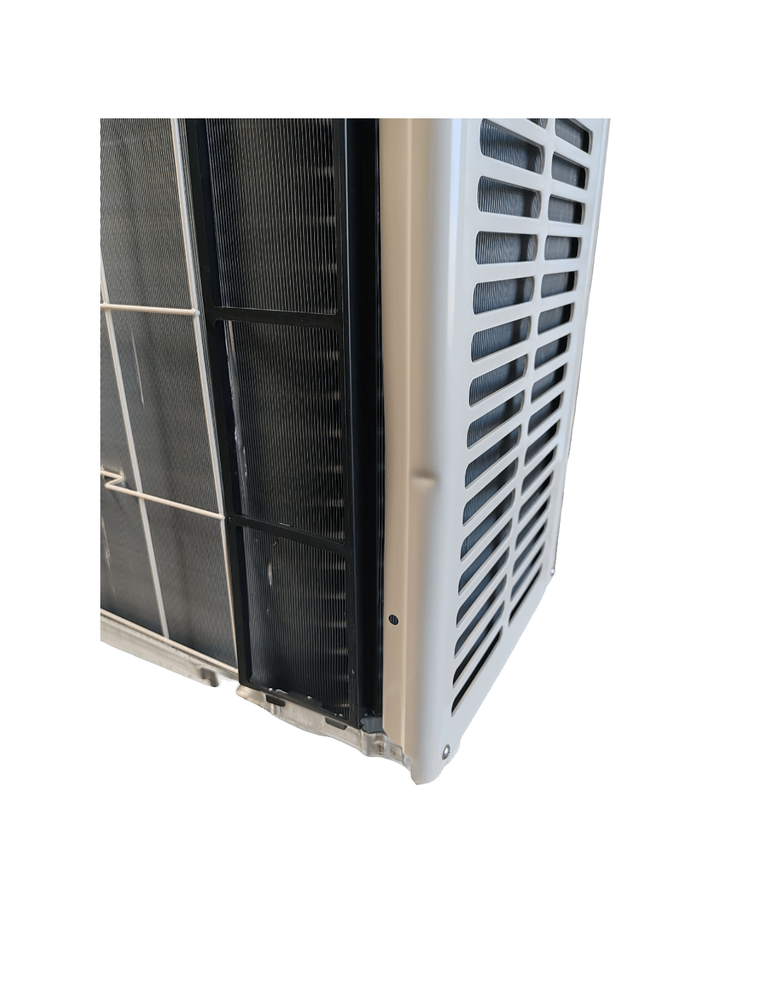 L'UNITA' ESTERNA HA DELLE AMMACCATURE SULLA PARTE POSTERIORE, LE LAMELLE SONO LIEVEMENTE DANNEGGIATE E L'IMBALLO E' DANNEGGIATO.