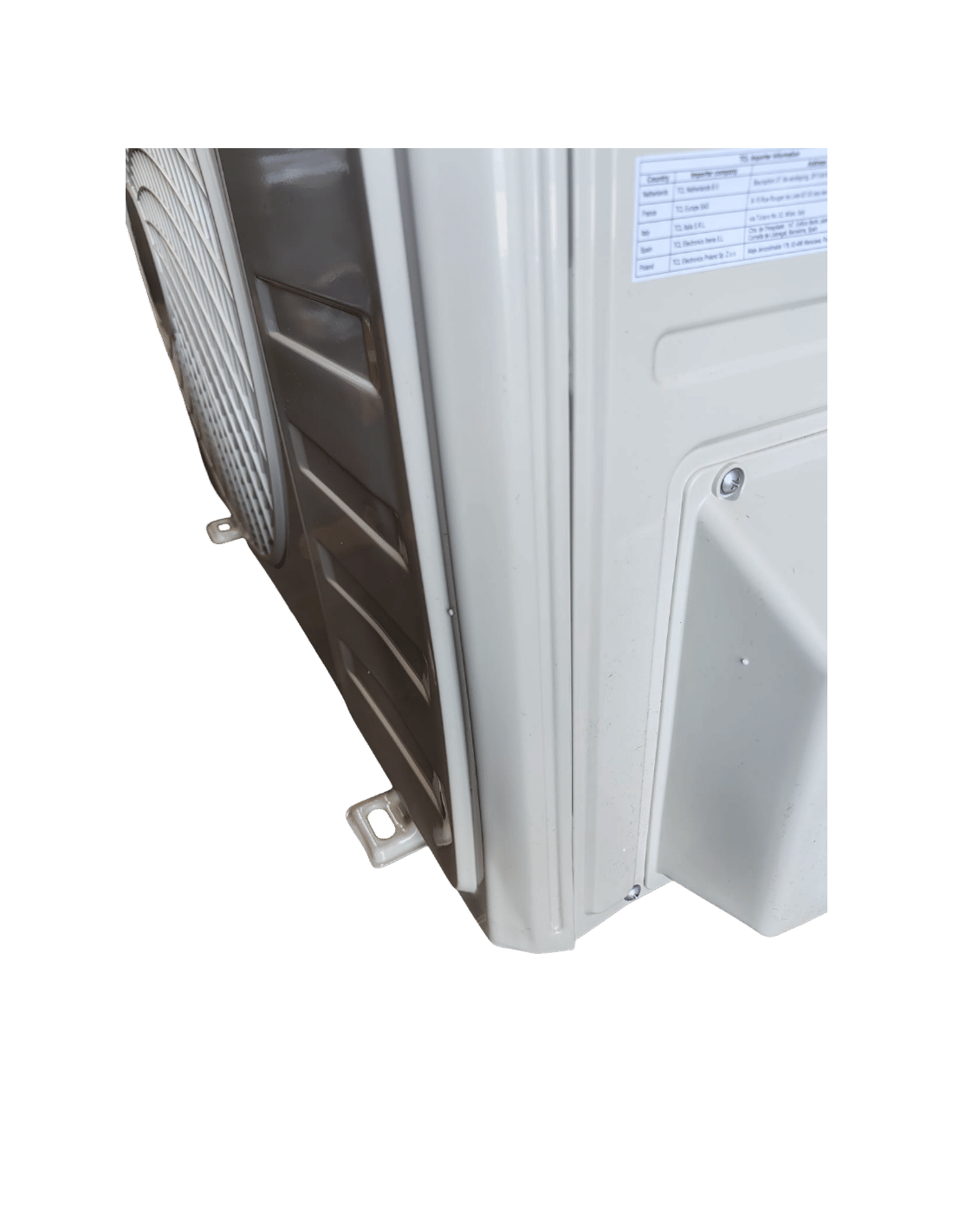 L'UNITA' ESTERNA HA UN'AMMACCATURA FRONTALE/LATERALE E L'IMBALLO E' DANNEGGIATO.
