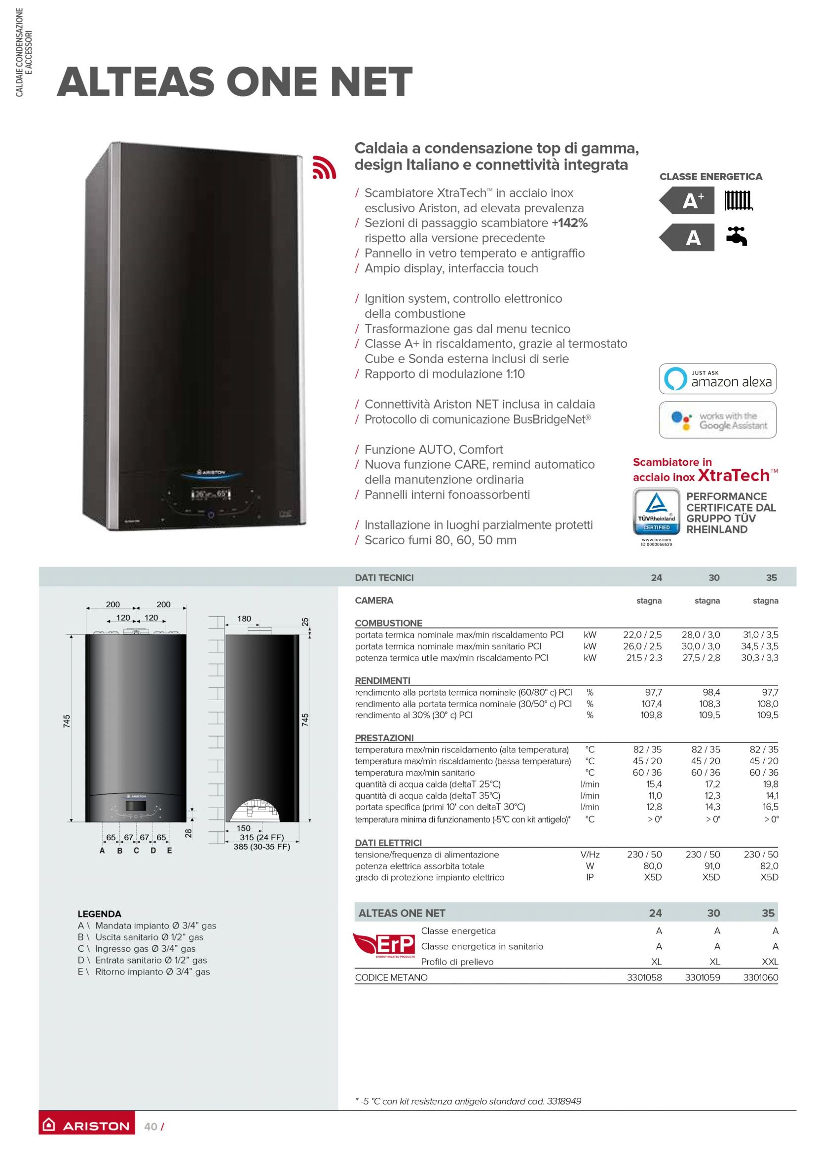 Caldaia Ariston ALTEAS ONE+NET 24 murale a condensazione cod. 3301058 capacità 24kW a Gas Metano / GPL