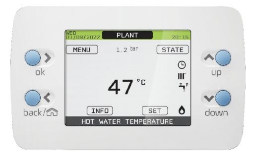Attraverso 4 tasti è possibile navigare il display in maniera semplice e intuitiva, accedendo a tutte le impostazioni e parametrizzazioni della caldaia e del sistema. L’autodiagnostica evoluta, unitamente alle funzioni di METEO X attivabili dal pannello, ne completano il profilo innovativo.