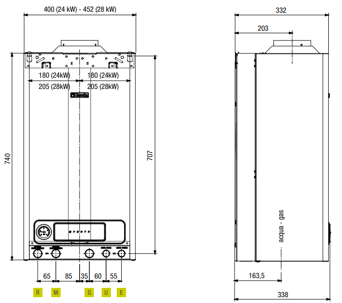 Le gamma Mynute Lx è disponibile in due modelli combinati a camera aperta, con potenza termica da 24 kW e 28 kW.