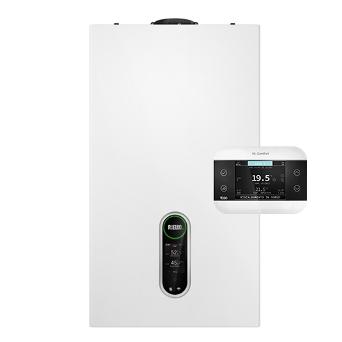 Caldaia Riello FAMILY HM CONNECT 25 KIS a condensazione cod. 20206152 capacità 25 kW a Gas Metano, termostato evoluto Hi, Comfort T300 DI SERIE. Classe efficienza Riscaldamento A, Classe efficienza Acqua calda sanitaria A. Spedizione su pedana iva e trasporto inclusi.