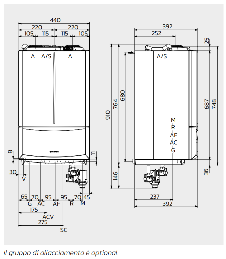 Può essere installata all’interno o all’esterno in luoghi parzialmente protetti; la clapet di serie permette l’abbinamento a sistemi collettivi di evacuazione di fumi in pressione positiva.