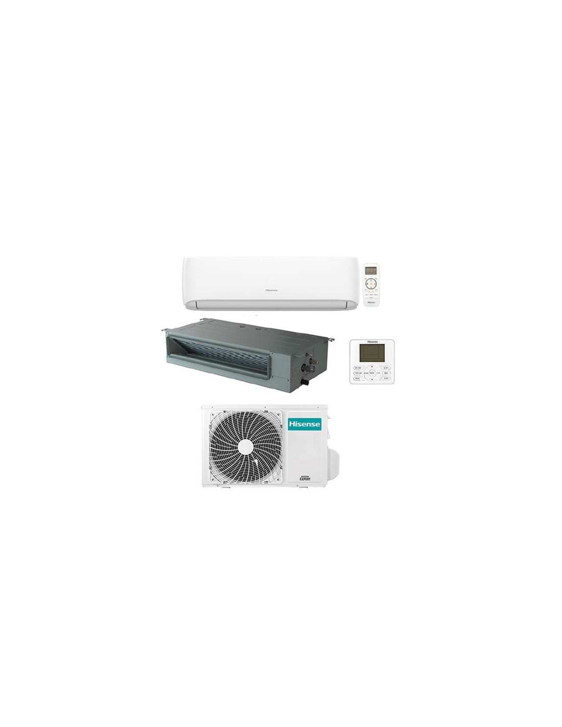 Climatizzatore Condizionatore Canalizzato Dual Split canalizzabile + split R32 Hisense 12000 + 12000 BTU pompa di calore inverter completo di una unità interna ADT35UX4RBL8, una CF35MR04G e una unità esterna 3AMW72U4RJC e comando a filo. Classe A++/A+ Gas R32. Spedizione su pedana Iva e trasporto inclusi. Canalizzabile R32