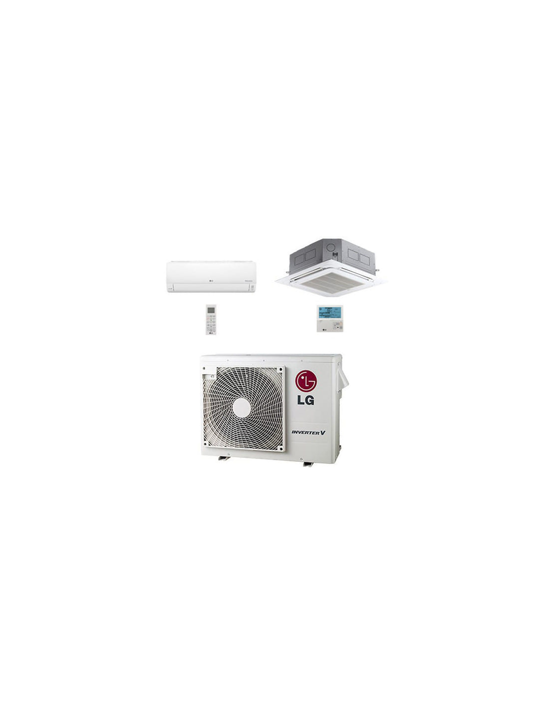 Climatizzatore Condizionatore LG Cassetta 4 Vie R32 Dual Split Inverter 9 + 18 BTU composto da una unità esterna MU4R25, una unità interna split da 9000 BTU S09EC NSJS ed una unità interna a cassetta da 18000 BTU CT18F con telecomando, comando a filo e pannello Classe A++/A+ Gas R32. Spedizione su pedana Iva e trasporto inclusi. Cassetta 4 Vie R32