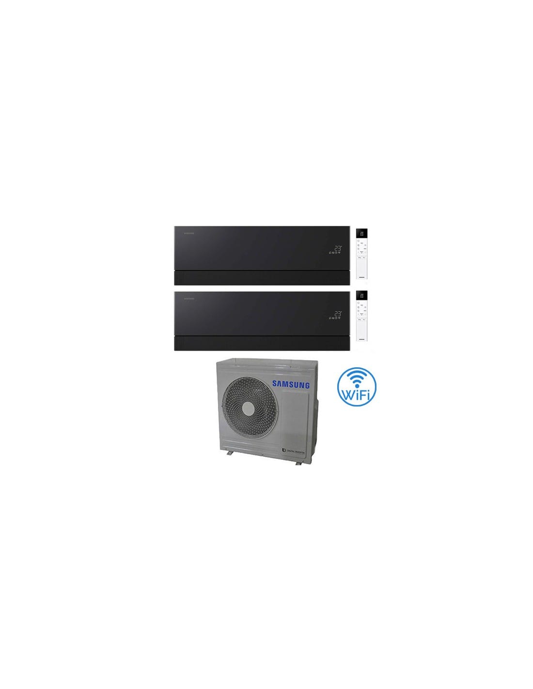 Climatizzatore Condizionatore Samsung Windfree Première Soapstone Charcoal Wifi Dual Split R32 Inverter 12 + 12 BTU composto da una unità esterna AJ068TXJ3KG/EU e due unità interne da 12000 BTU AR70H12C1ABNEU Classe A++/A+ Gas R32. Spedizione su pedana Iva e trasporto inclusi.