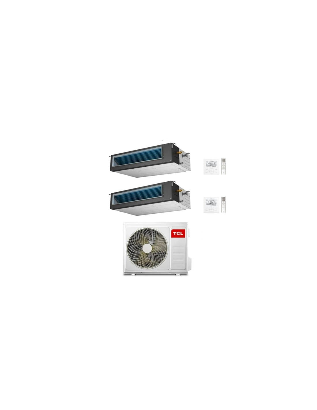 Climatizzatore Condizionatore TCL Canalizzato Wi-Fi R32 Dual Split Inverter 18 + 18 BTU composto da una unità esterna MT4250 e due unità interne da 18000 BTU MN18DW2 con telecomando e comando a filo Classe A++/A+ Gas R32. Spedizione su pedana iva e trasporto inclusi. Canalizzato TCL R32