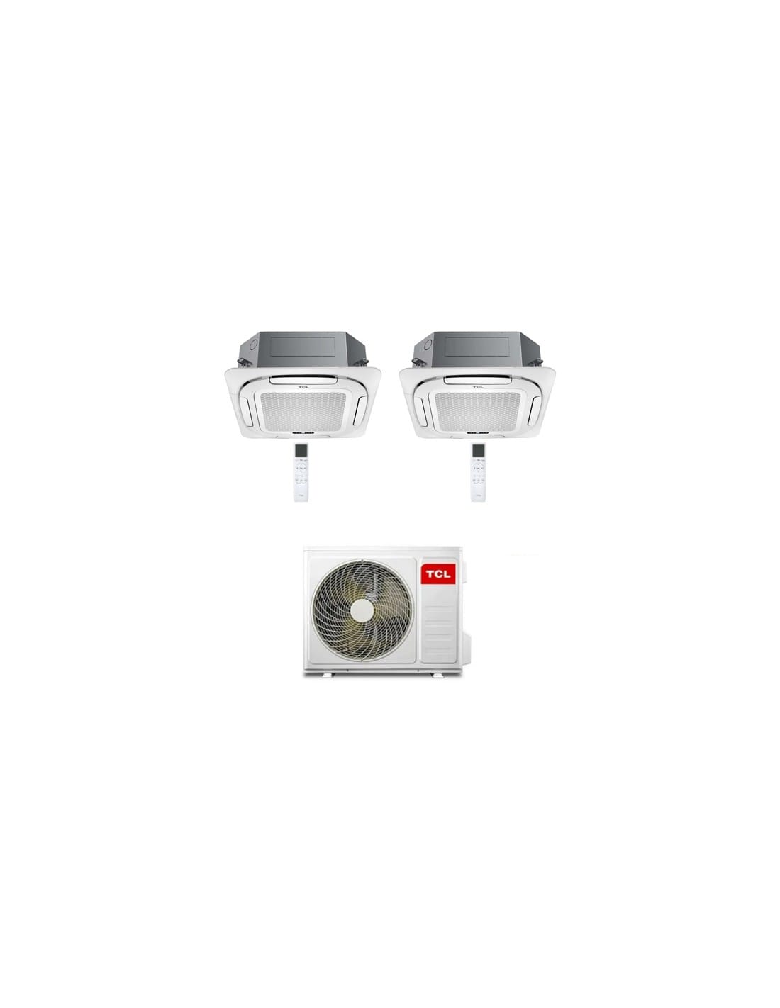 Climatizzatore Condizionatore TCL Cassetta 4 Vie Compact Wi-Fi R32 Dual Split Inverter 12 + 18 BTU composto da una unità esterna MT2730, una unità interna da 12000 BTU MN12SS1 e una unità interna da 18000 BTU MN18SS3 con telecomando e griglia Classe A++/A+ Gas R32. Spedizione su pedana iva e trasporto inclusi. Cassetta 4 Vie Compact TCL