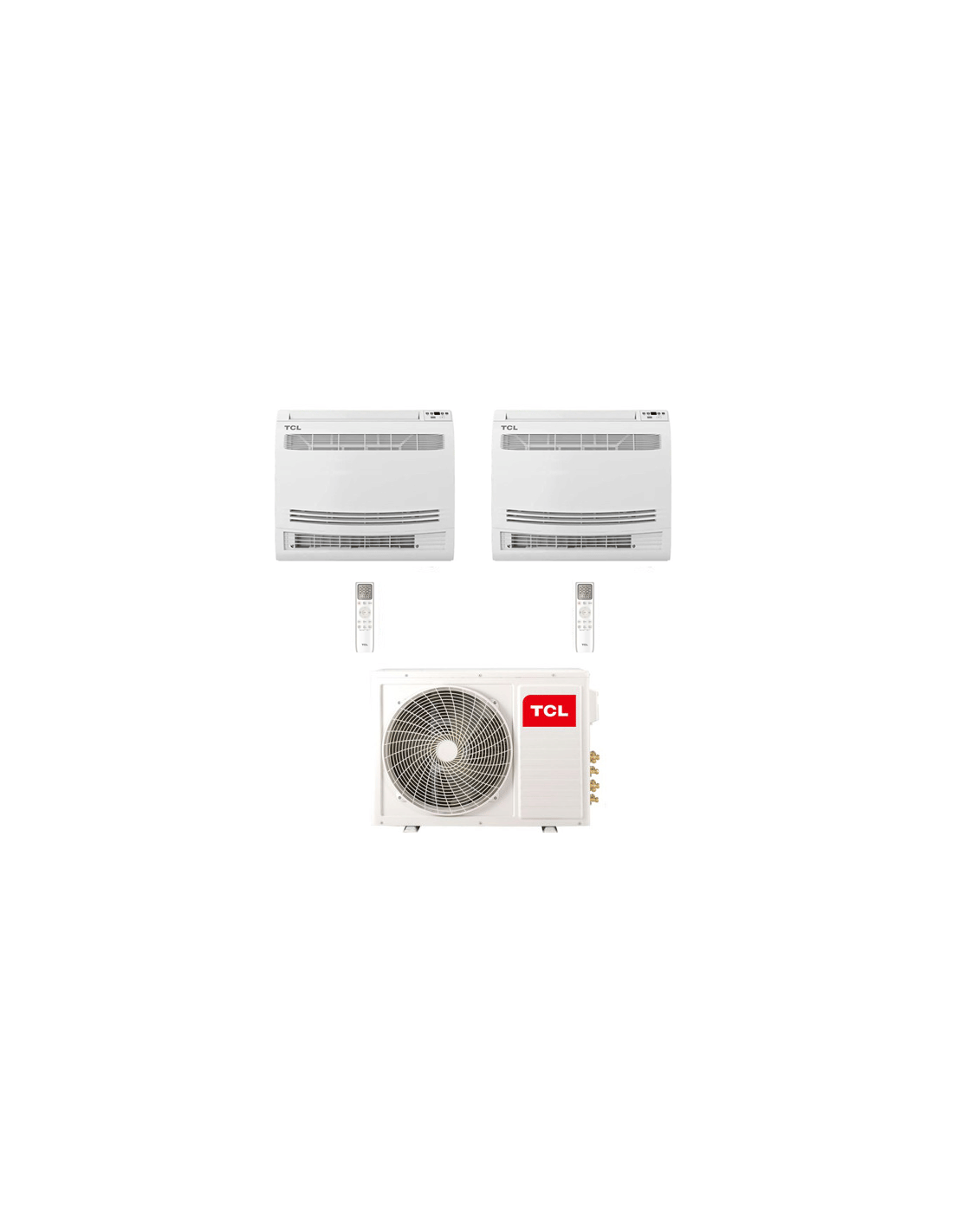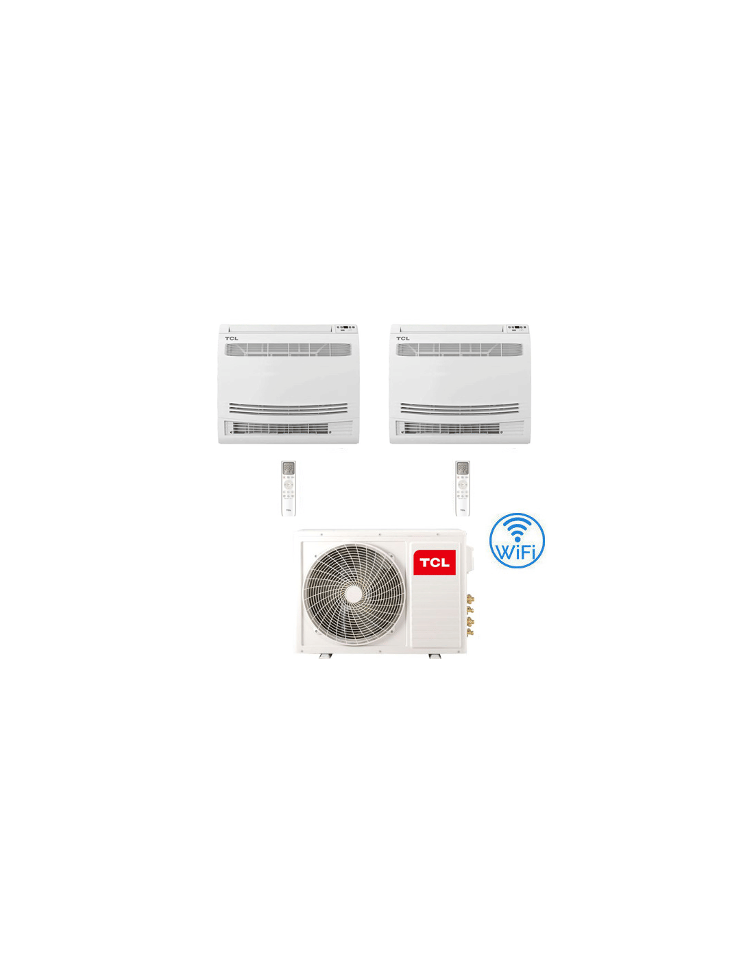 Climatizzatore Condizionatore TCL console pavimento Wi-Fi R32 Dual Split Inverter 12 + 12 BTU composto da una unità esterna MT2730 e due unità interne da 12000 BTU MN12Z2 con telecomando Classe A++/A+ Gas R32. Spedizione su pedana iva e trasporto inclusi. Console TCL R32