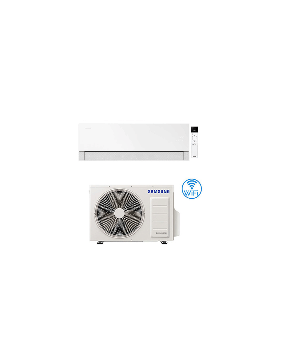 Climatizzatore condizionatore Monosplit Samsung 12000 BTU Windfree Première Essential White Wifi composto da una unità interna da AR70H12C1AWNEU ed una unità esterna AR70H12C1AWXEU pompa di calore Inverter completo di unità esterna + unità interna + telecomando. Classe Energetica A+++/A++ Gas R32. Spedizione su pedana Iva e trasporto inclusi. Windfree Première Essential White