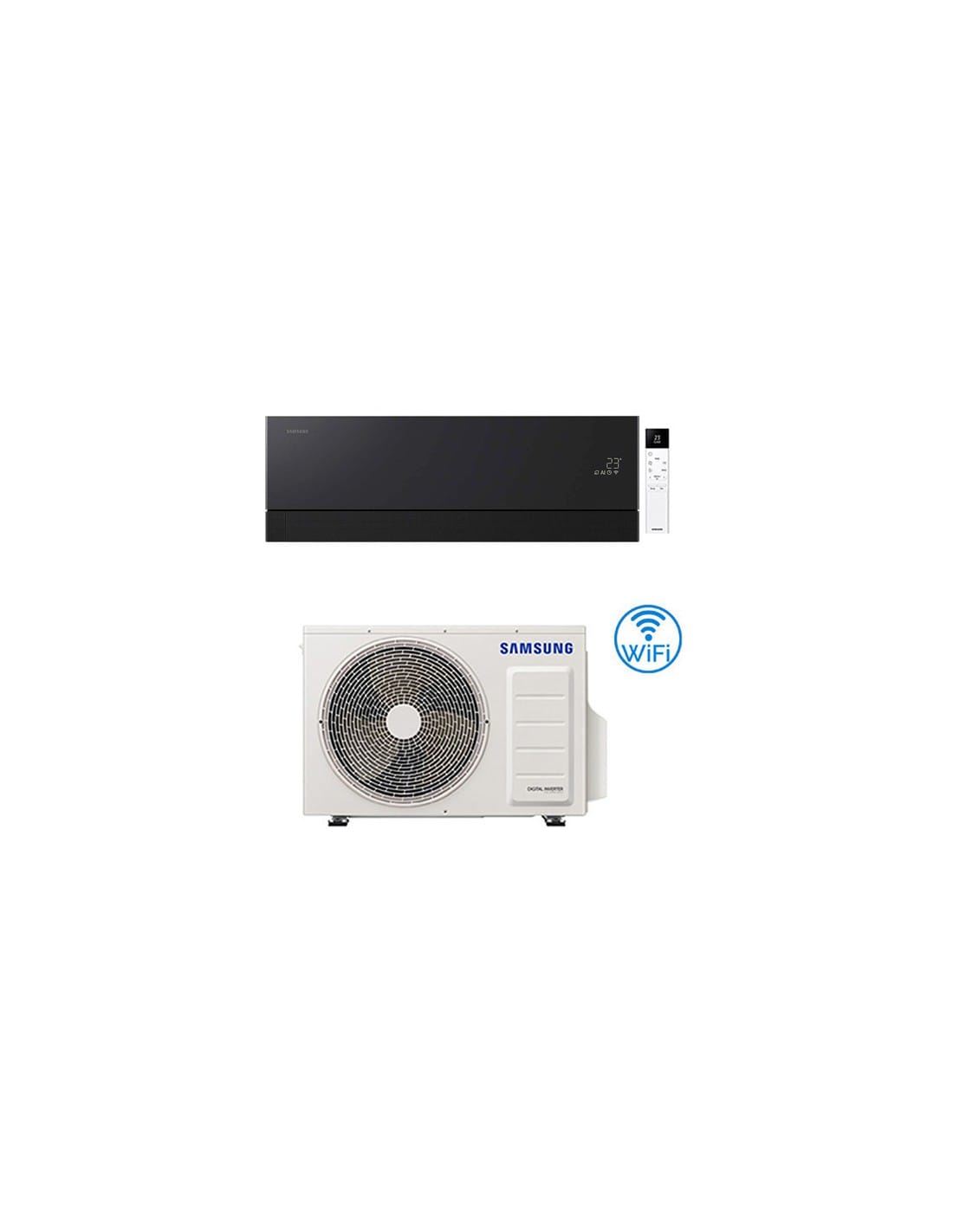 Climatizzatore condizionatore Monosplit Samsung 12000 BTU Windfree Première Plus Soapstone Charcoal Wifi composto da una unità interna da AR70H12CAABNEU ed una unità esterna AR70H12CAAWXEU pompa di calore Inverter completo di unità esterna + unità interna + telecomando. Classe Energetica A+++/A+++ Gas R32. Spedizione su pedana Iva e trasporto inclusi. Windfree Première Plus Soapstone Charcoal