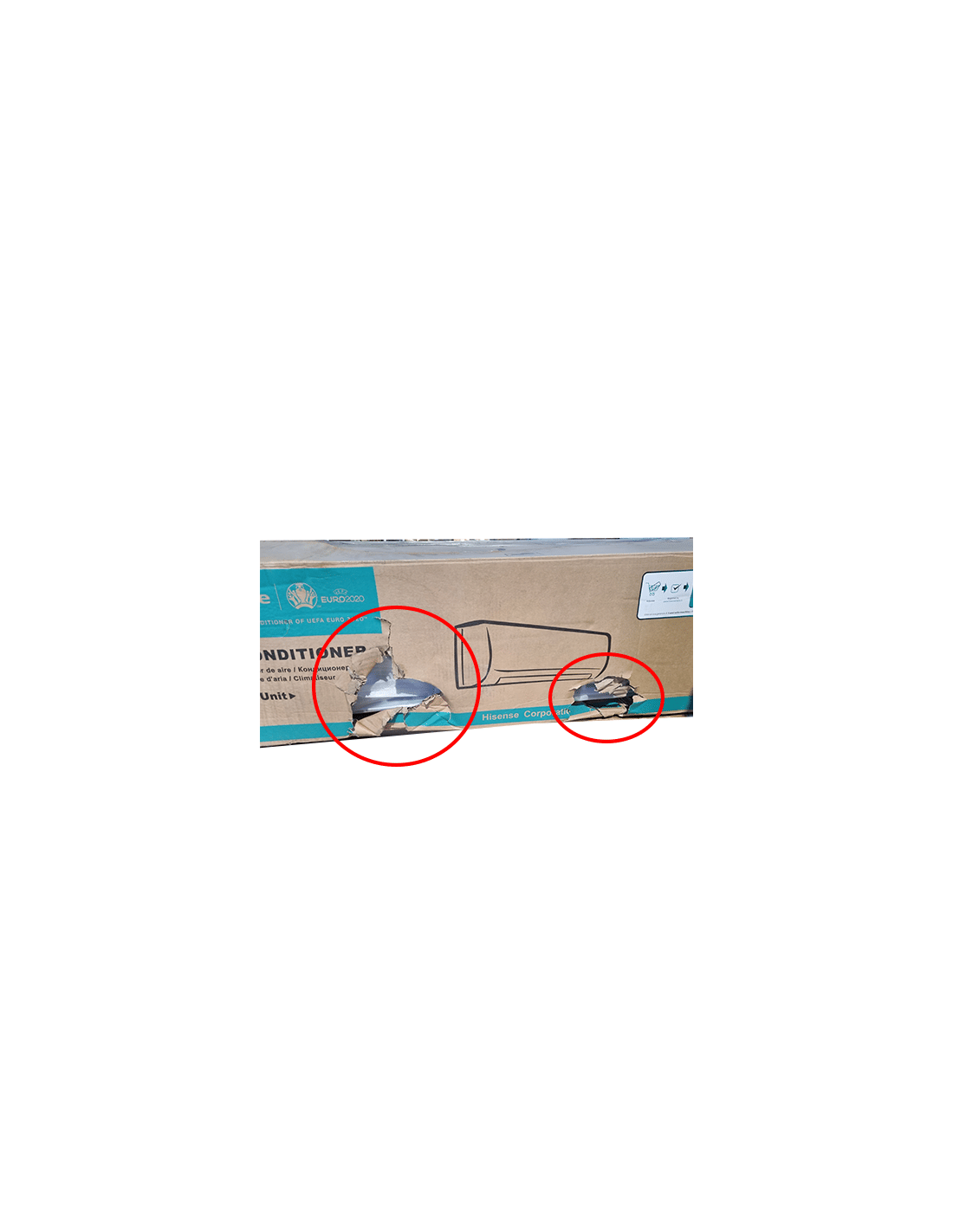 L'UNITA' INTERNA HA DELLE SPACCATURE SULLA PARTE SUPERIORE, HA LE LAMELLE LEGGERMENTE SPOSTATE, HA UNA ROTTURA SULLA PARTE POSTERIORE E L'IMBALLO E' USURATO.