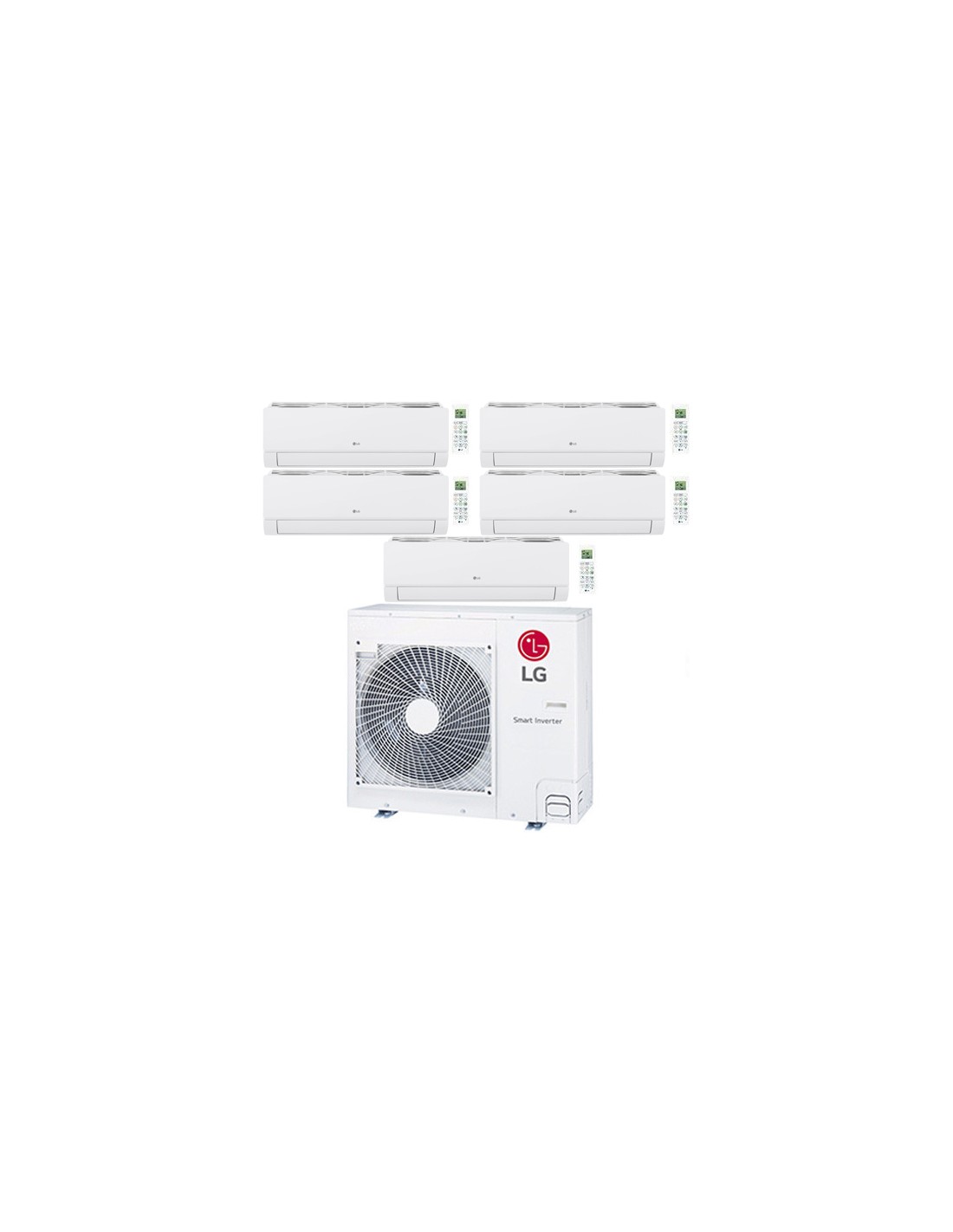 Climatizzatore Condizionatore LG Dualcool Libero Smart R32 Wifi Penta Split Dual Inverter 7+7+9+12+12 BTU composto da una unità esterna MU5R30, due unità interne da 7000 BTU MS07EZ.NSJ, una unità interna da 9000 BTU EZ09CSN.CSJ1 e due unità interne da 12000 BTU EZ12CSN.CSJ1 Classe A++/A+ Gas R32. Spedizione su pedana iva e trasporto inclusi. Dualcool Libero Smart R32
