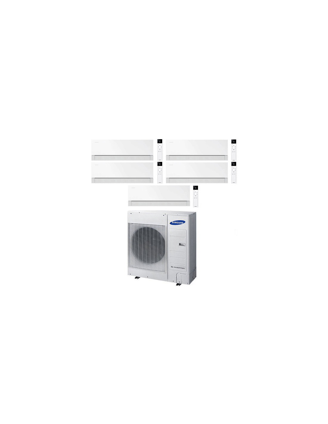 Climatizzatore Condizionatore Samsung Windfree Première Plus Essential White Wifi Penta Split R32 Inverter 9 + 9 + 9 + 9 + 9 BTU composto da una unità esterna AJ100TXJ5KG/EU e cinque unità interne da 9000 BTU AR70H09CAAWNEU Classe A++/A+ Gas R32. Spedizione su pedana Iva e trasporto inclusi.