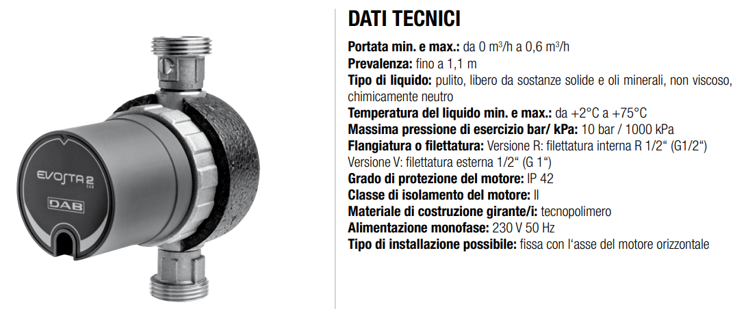 Dab Evosta 2 11/139 SAN V circolatore elettronico a rotore bagnato a basso consumo energetico la circolazione dell'acqua calda sanitaria in piccoli impianti in ambiti domestici e residenziali. Iva inclusa.