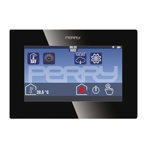 Unità domotica da parete con display, per monitoraggio e termoregolazione con connessione al cloud Perry. Dotato di Wi-Fi, 868Mhz, M-Bus radio 868MHz, relè - 1PE2CDOM01
