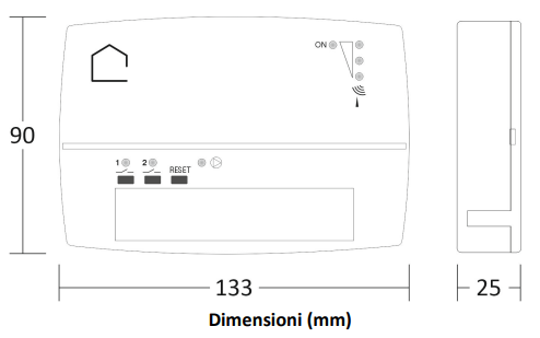 - Alimentazione: 230 V~ 50/60 Hz, assorbimento 2,5VA