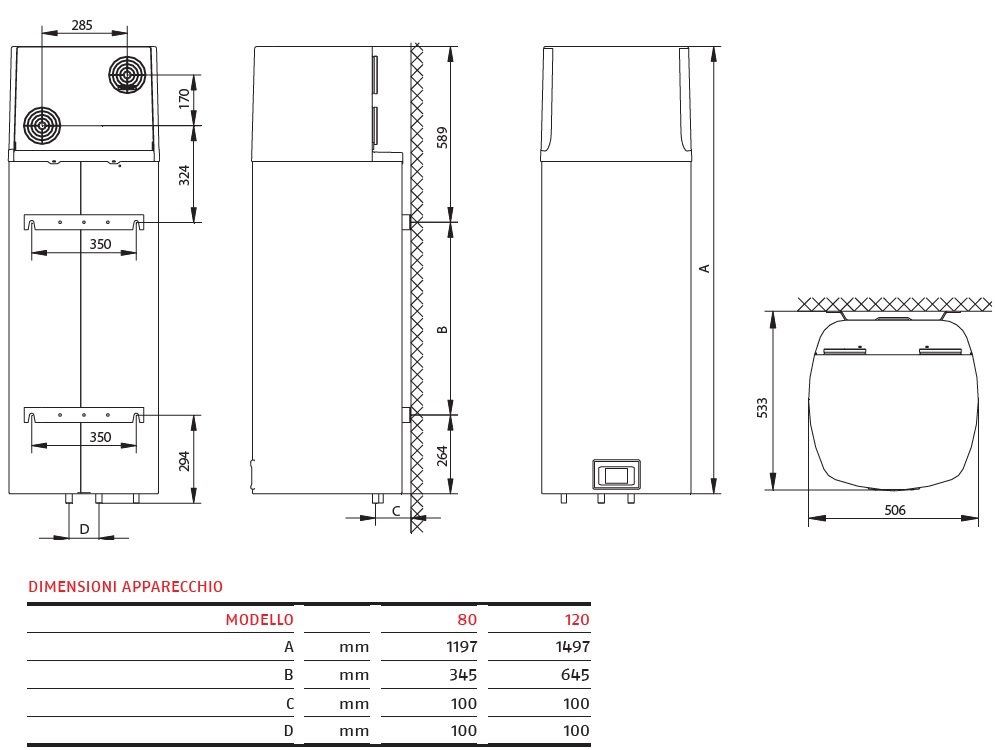 -- L’accumulo (80 o 120 litri a seconda dei modelli) consente di immagazzinare e conservare a lungo il calore, grazie al mantello isolante in poliuretano con spessori variabili da 45 a 80 mm.
