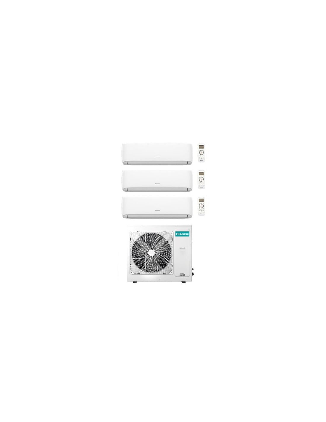 Kit Wifi incluso Climatizzatore Condizionatore Hisense New Comfort trial split inverter 7 + 9 + 12 BTU composto da una unità esterna 3AMW72U4RJC, una unità interna da 7000 BTU Dj20Yd00G, una Unità Interna Da 9000 BTU DJ25VE0AG e una unità interna da 12000 BTU DJ35VE0AG classe A++/A+ Gas R32. Spedizione su pedana Iva e trasporto inclusi. New Comfort R32 Wifi