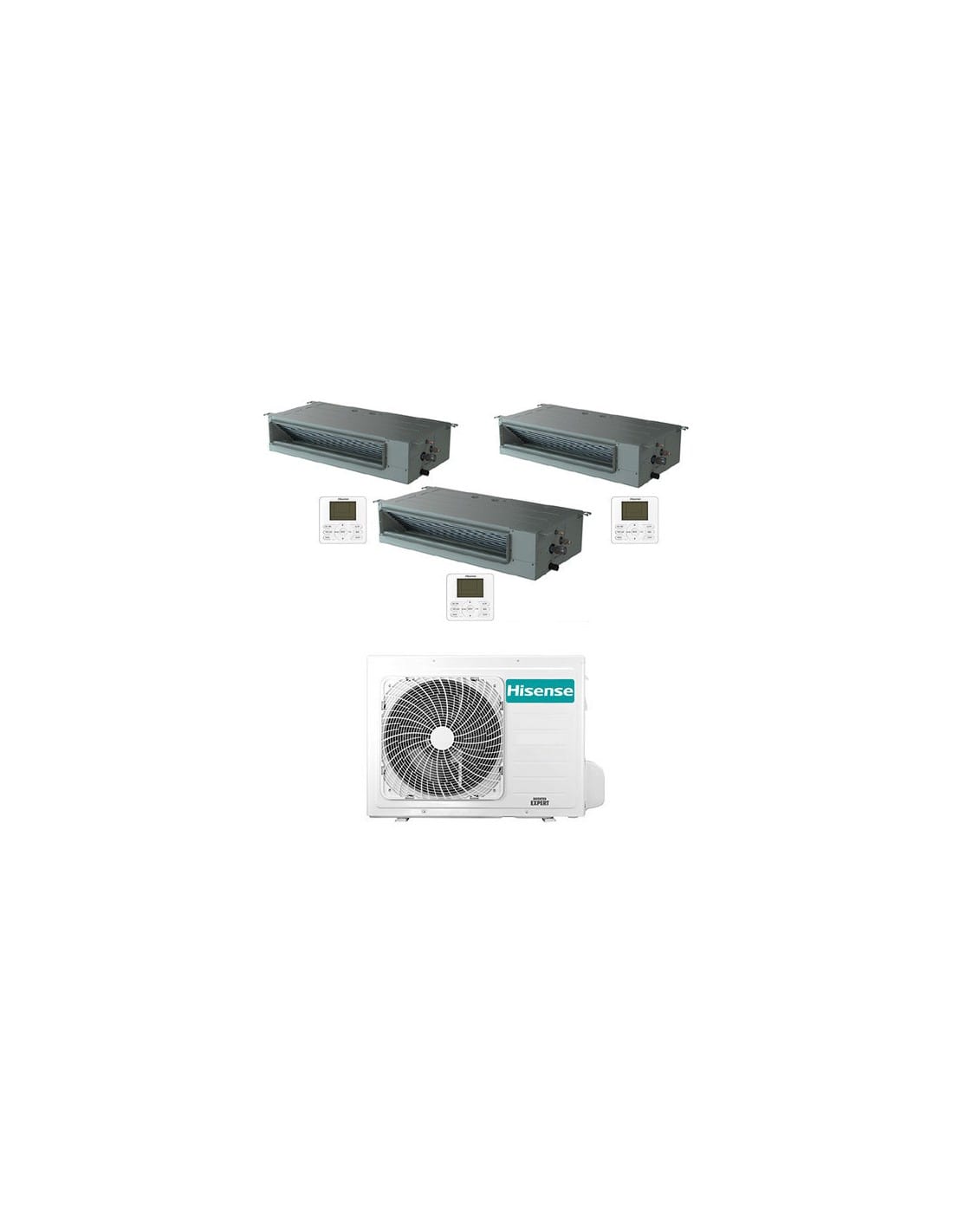 Climatizzatore Condizionatore Canalizzato Trial Split R32 Hisense 9000 + 9000 + 12000 BTU pompa di calore inverter completo di due unità interne ADT26UX4RBL8 e una unità ADT35UX4RBL8, unità esterna 3AMW52U4RJC e comando a filo. Classe A++/A+ Gas R32. Spedizione su pedana Iva e trasporto inclusi. Canalizzabile R32