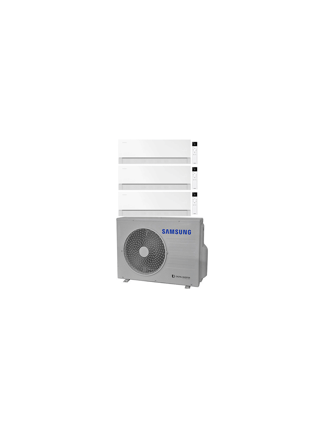 Climatizzatore Condizionatore Samsung Windfree Première Plus Essential White Wifi Trial Split R32 Inverter 7 + 9 + 9 BTU composto da una unità esterna AJ052TXJ3KG/EU, una unità interna da 7000 BTU AR70H07CAAWNEU e due unità interne da 9000 BTU AR70H09CAAWNEU Classe A+++/A++ Gas R32. Spedizione su pedana Iva e trasporto inclusi.