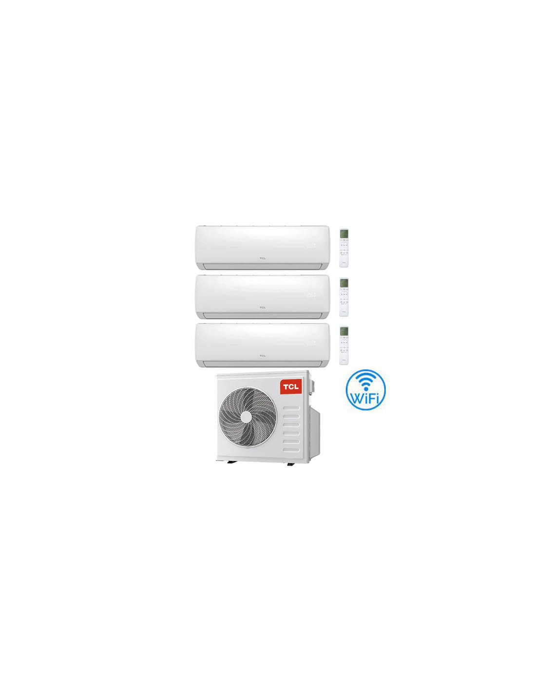 Climatizzatore Condizionatore TCL Elite serie F2 F4 F1 Wifi R32 Trial Split Inverter 9 + 12 + 18 BTU composto da una unità esterna MT2730, una unità interna da 9000 BTU SN09F2S0, una unità interna da 12000 BTU SN12F2S0 e una unità interna da 18000 BTU SN18F2S0. Classe A++/A+ Gas R32. Spedizione su pedana iva e trasporto inclusi. Elite F2 R32