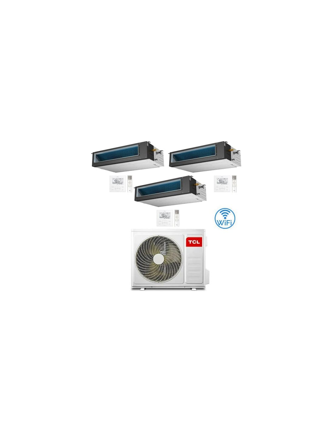 Climatizzatore Condizionatore TCL Canalizzato Wi-Fi R32 Trial Split Inverter 9 + 12 + 18 BTU composto da una unità esterna MT3240, una unità interna da 9000 BTU MN09DW1, una unità interna da 12000 BTU MN12DW1 e una unità interna da 18000 BTU MN18DW2 con telecomando e comando a filo Classe A++/A+ Gas R32. Spedizione su pedana iva e trasporto inclusi. Canalizzato TCL R32