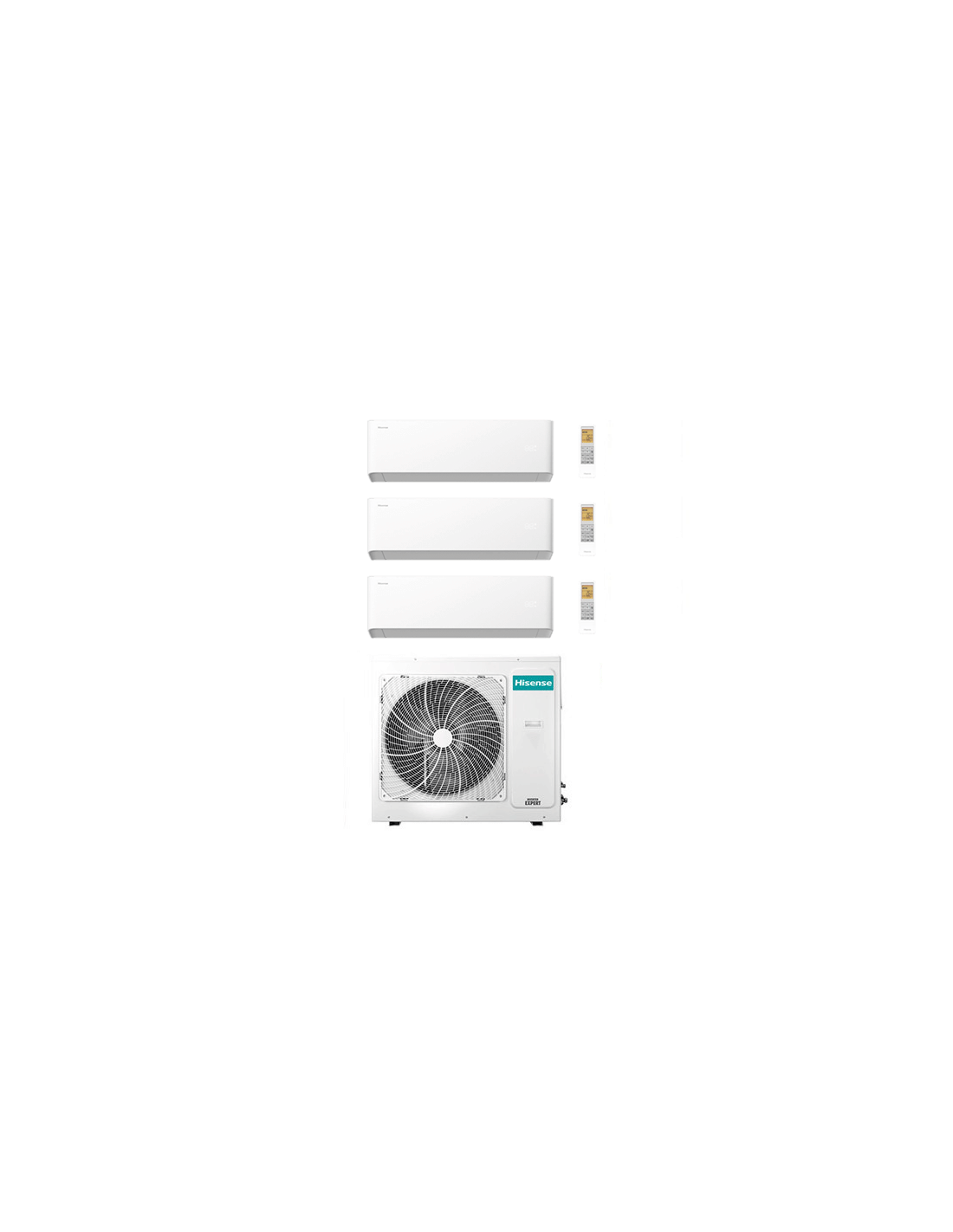Climatizzatore Condizionatore Hisense Uni HB Trial Split Inverter 9 + 9 + 18 BTU composto da una unità esterna 4AMW81U4RJC, due unità interne da 9000 BTU HB25XU0AG e una unità interna da 18000 BTU HB50BP0AG Classe A++/A+ Gas R32. Spedizione su pedana iva e trasporto inclusi. Uni HB R32 Wifi