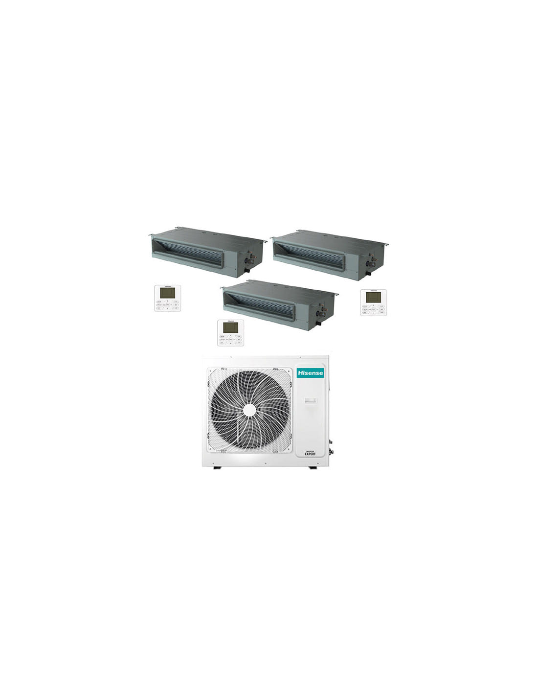 Climatizzatore Condizionatore Canalizzato Trial Split R32 Hisense 9000 + 9000 + 18000 BTU pompa di calore inverter completo di due unità interne ADT26UX4RBL8 e una unità ADT52UX4RCL8, unità esterna 5AMW125U4RTA e comando a filo. Classe A++/A+ Gas R32. Spedizione su pedana Iva e trasporto inclusi. Canalizzabile R32